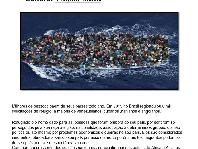 O editorial era sobre a questão dos refugiados e nossa aluna, Thayany Vitória Maciel Cavenaghi, do 9º ano B da Emef Anira Franco de...