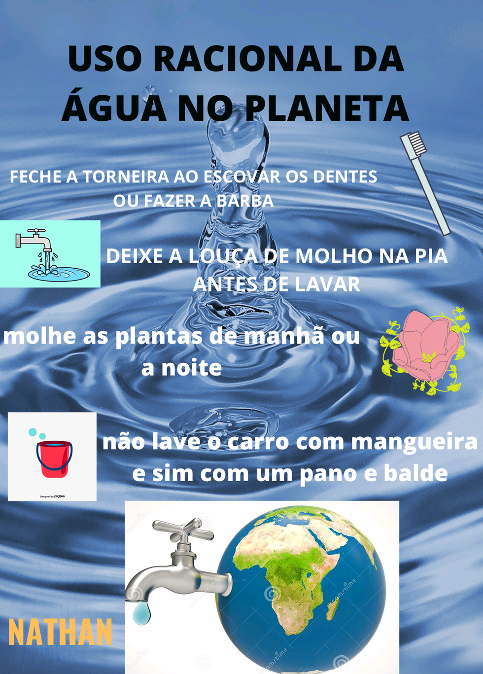 O aluno Nathan Costa Batista, do 6º ano D, da Emef Anira Franco de Campos, elaborou um cartaz com medidas educativas no Uso Racional da água no Planeta. Parabéns!